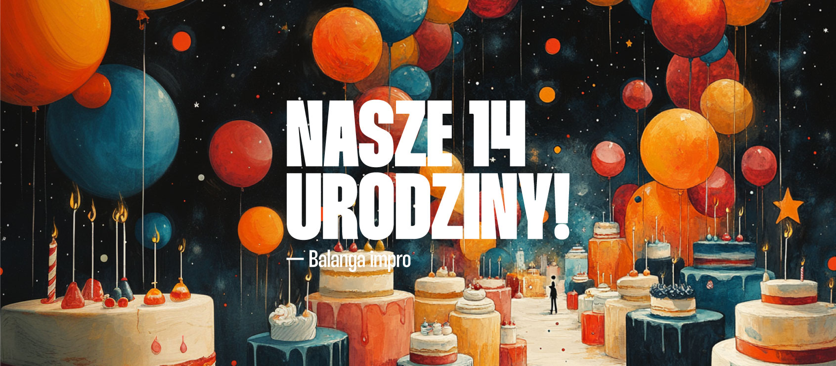Co ważne — świętujemy nasze 14. urodziny! To dla nas wyjątkowy czas – już od 14 lat improwizacja bawi, wzrusza i zaskakuje naszą wspaniałą publiczność. Z tej okazji szykujemy dla Was niepowtarzalne urodzinowe show, w którym pojawią się goście specjalni, wyjątkowe formaty i… słodkie niespodzianki! Dołączcie do nas i razem świętujmy tę niezapomnianą rocznicę!